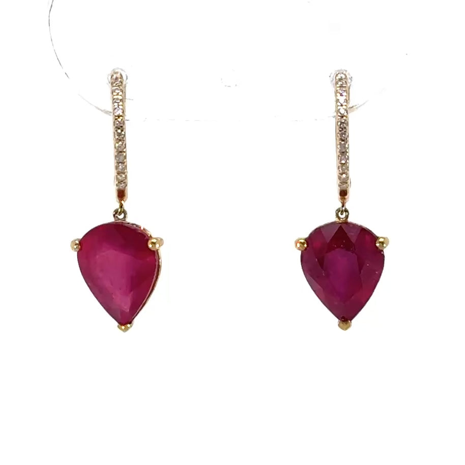 18K Yellow Gold Diamond Huggies Ruby Drop
