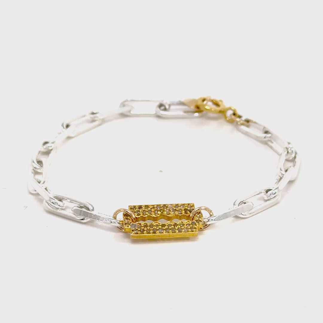 Sparkly diamond details dance across a chic keyhole charm, dangling from a sleek sterling silver paperclip chain finished with a gold-filled clasp. Pure fun meets understated elegance.