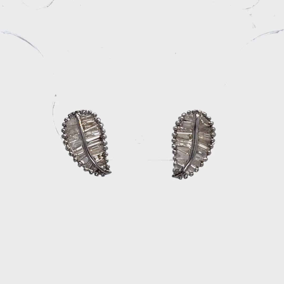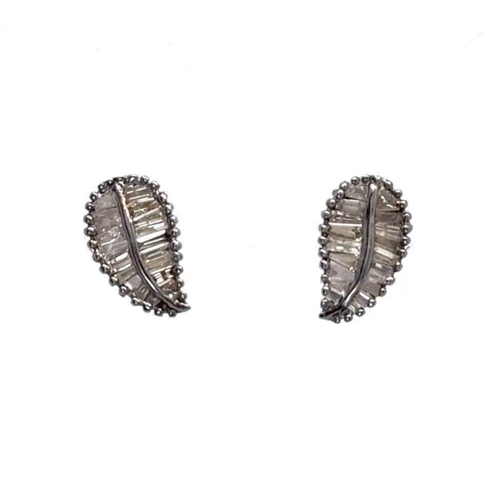 Diamond Baguette Silver Leaf Studs