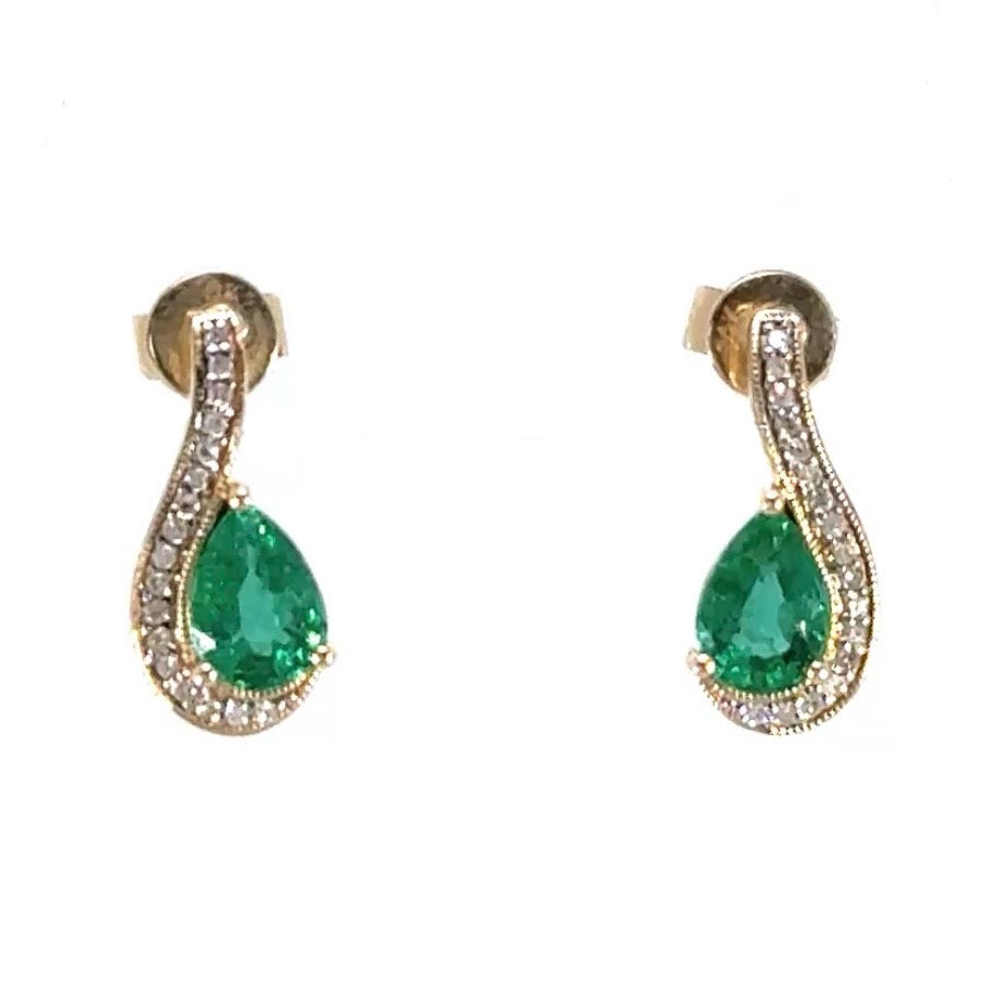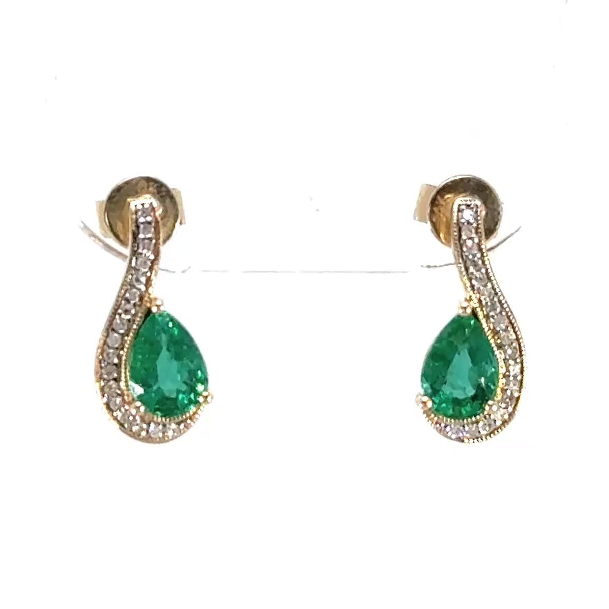 Pave Diamond Spiral Wrapped Emerald Studs Earrings 14k