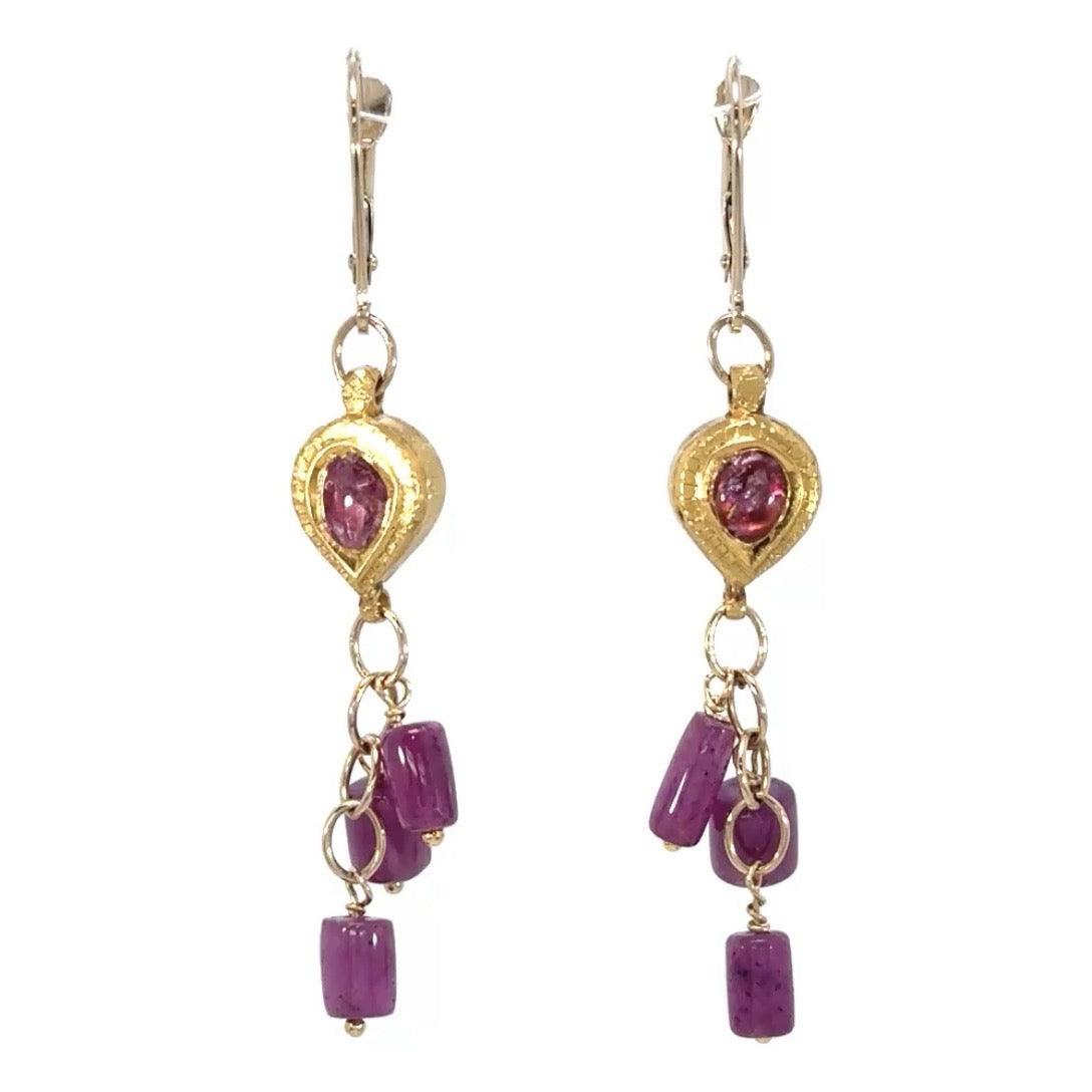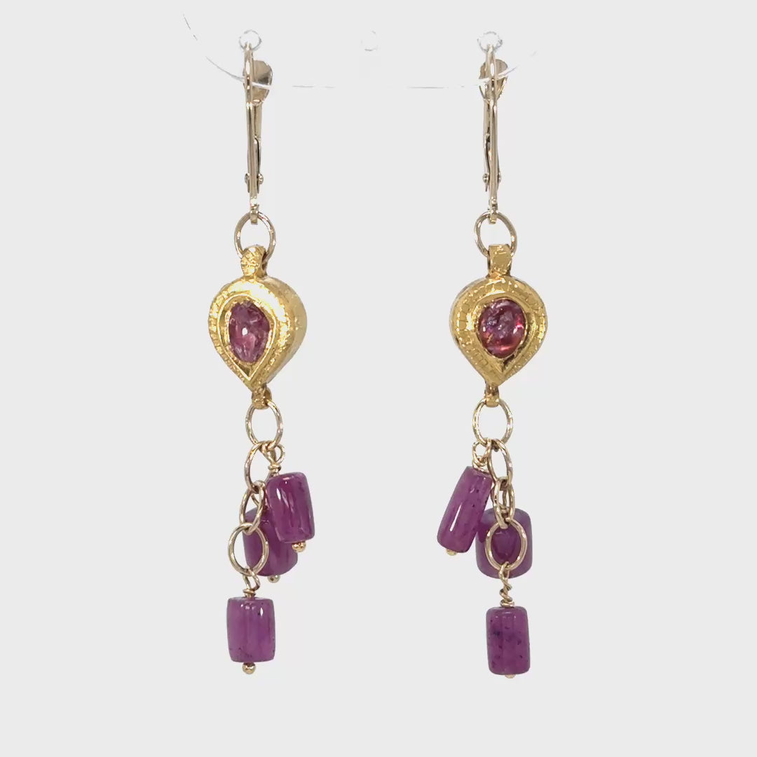 Ruby Pink Tourmaline Earrings-14k