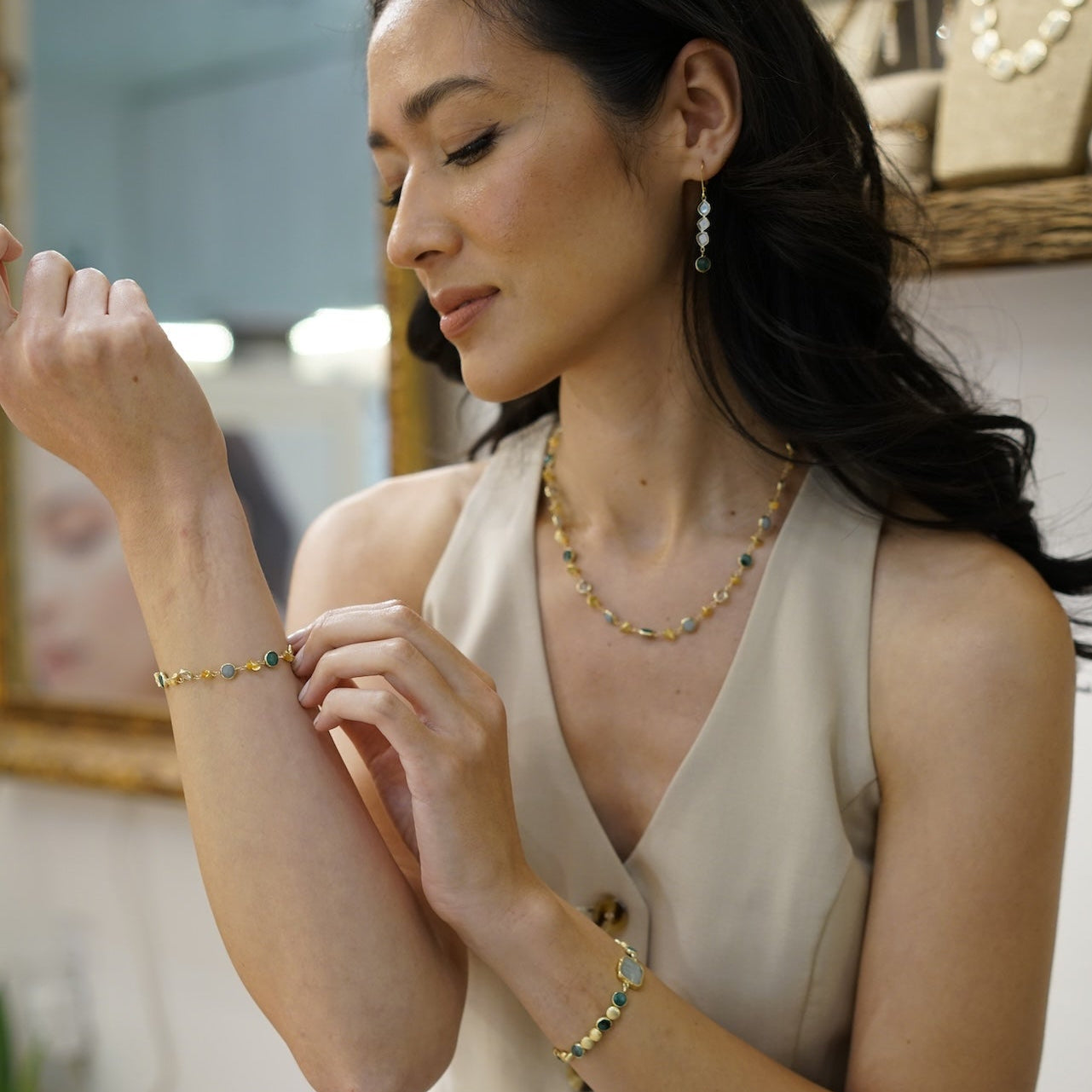 Mixed Topaz Circle Link bracelet