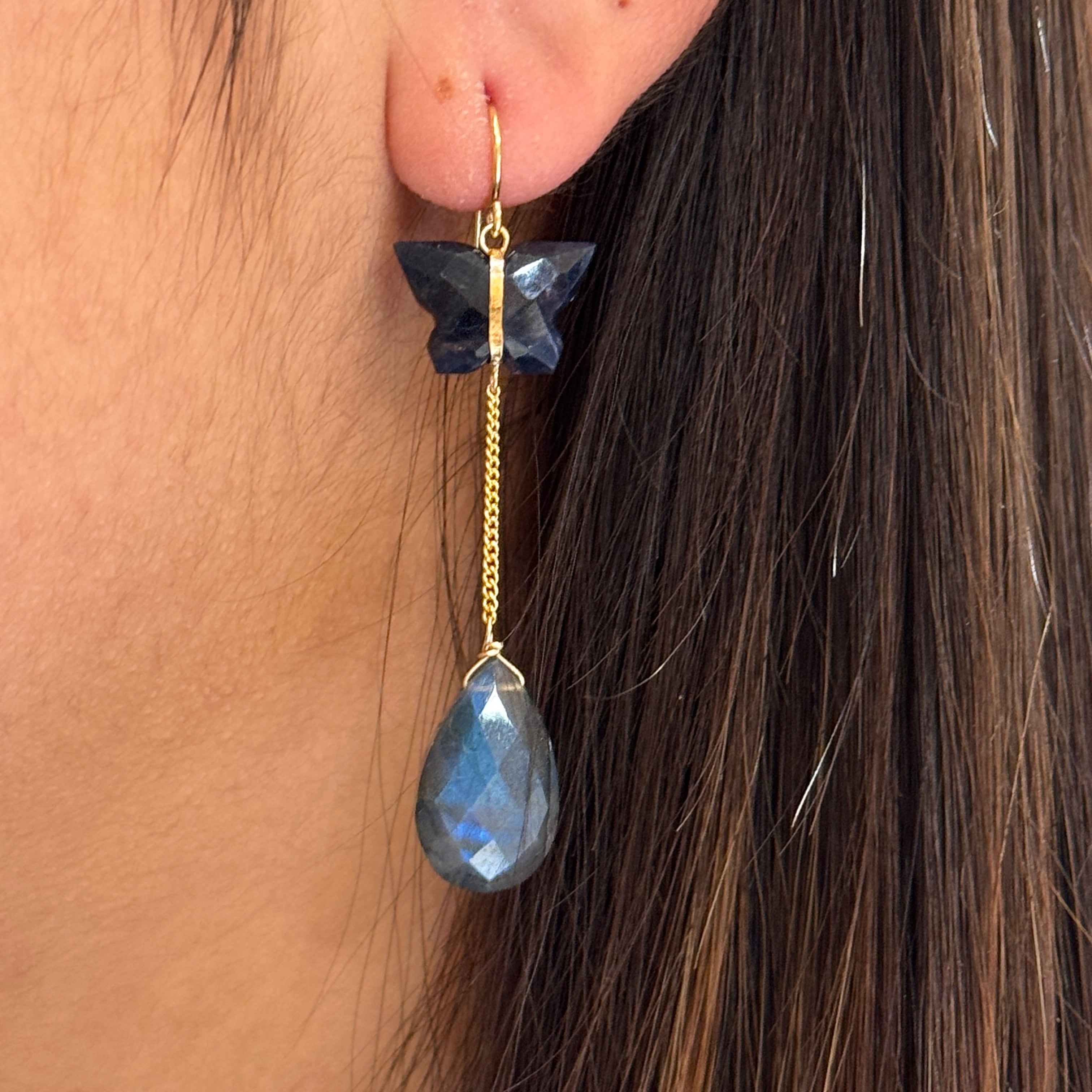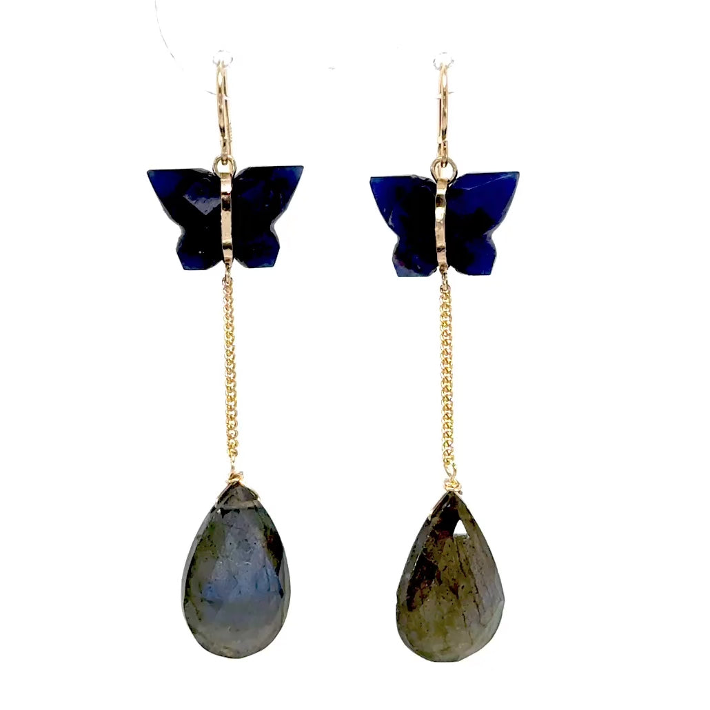 Lapis Butterfly Labradorite Drop Earrings