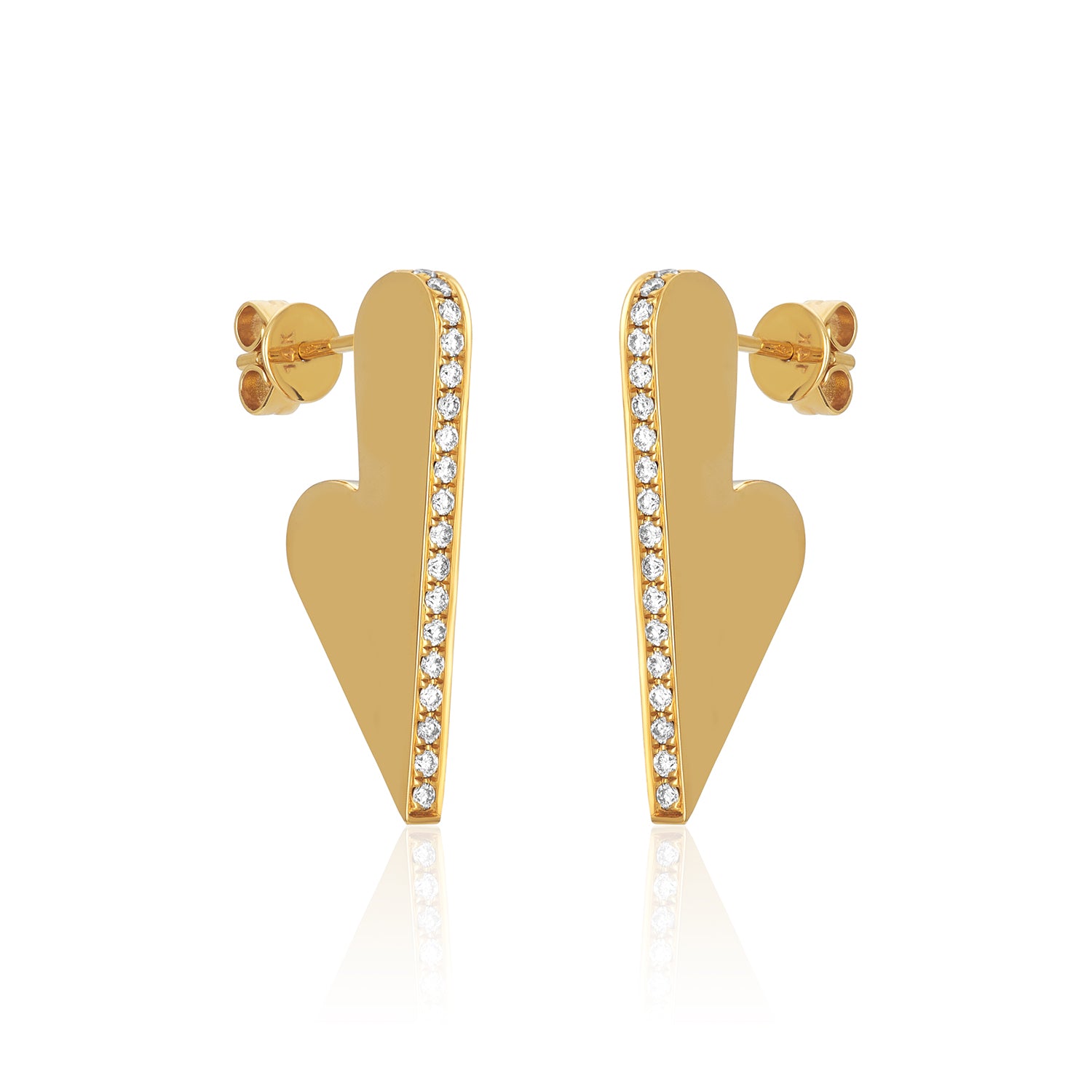 Pave Diamond Heart Slice Gold Studs 14k