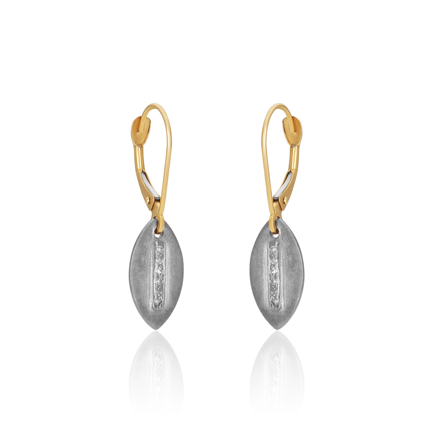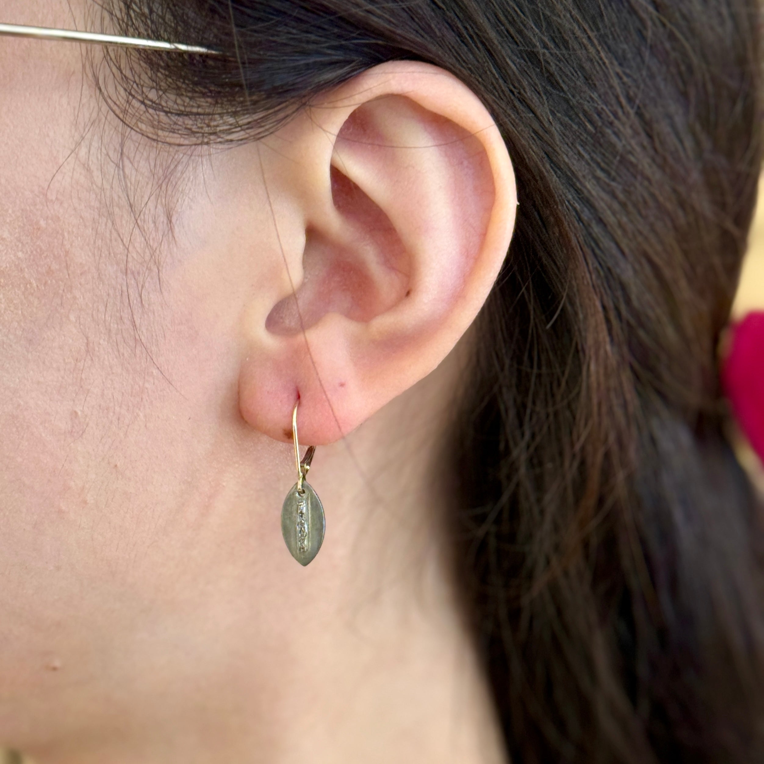 Pave Diamond Silver Leaf Earrings