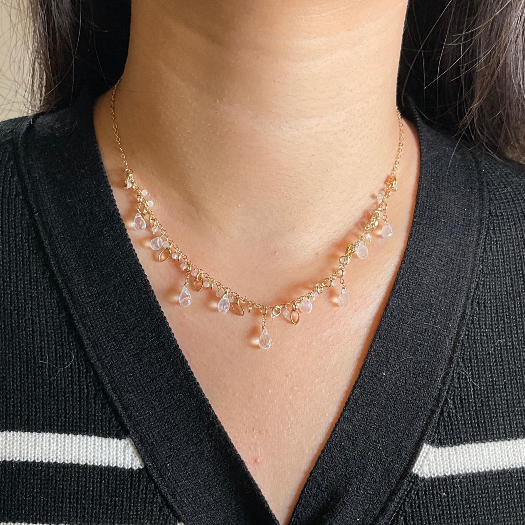 Pipe Shaped Pink Blue Wired Aquamarine Long Necklace