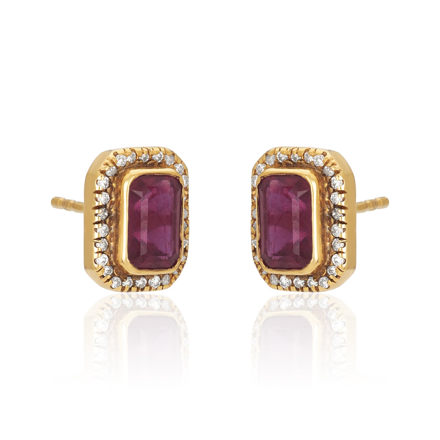 Rectangle Ruby Diamond Frame Studs In 14K