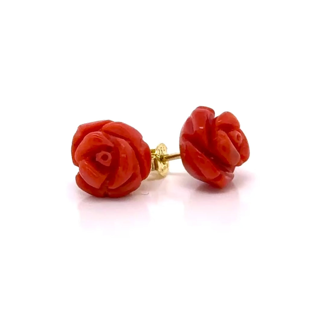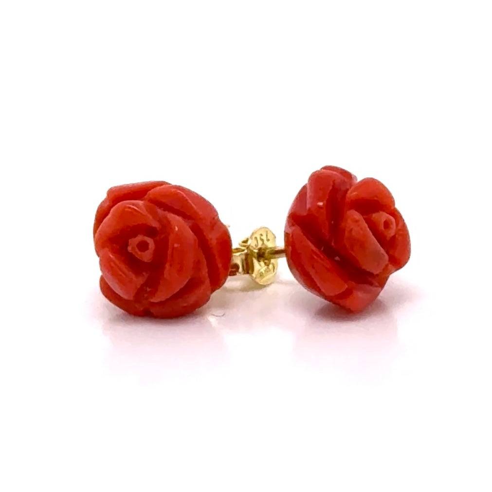 Rose Coral Gold Studs 18K