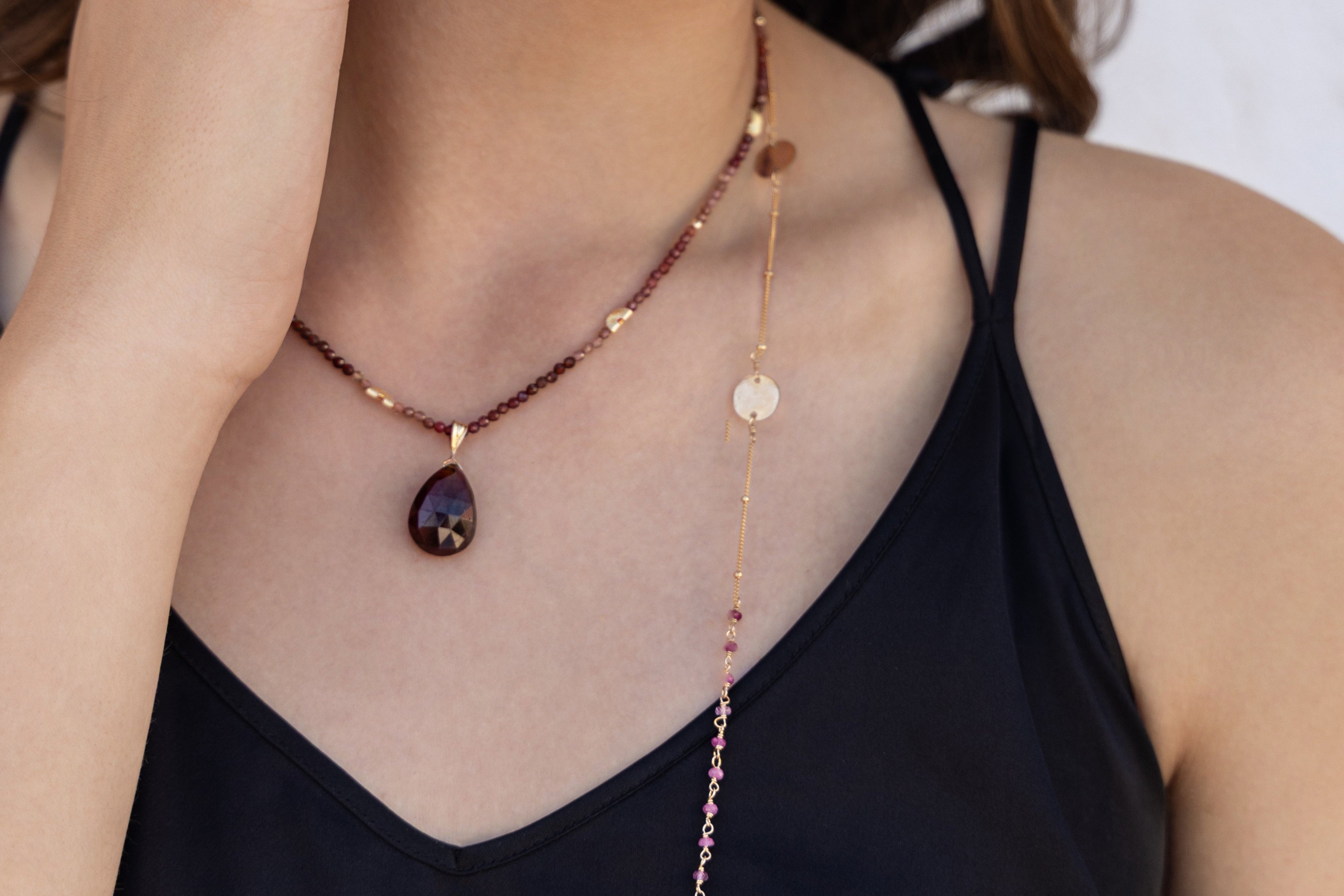 Amethyst Lariat Garnet Necklace