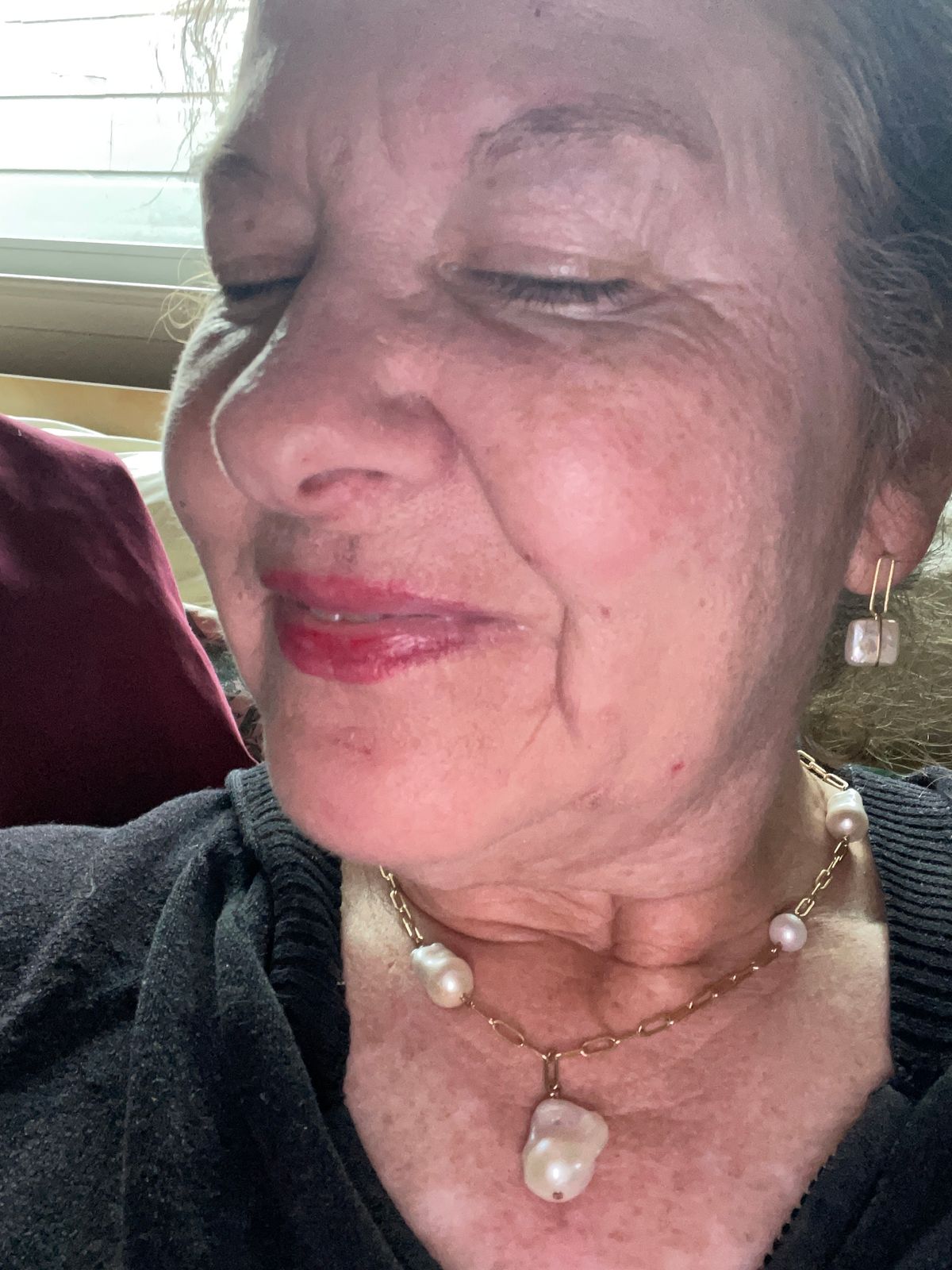 This necklace is a great combination of baroque pearls with gold paperclip chain. It’s really comfortable, and looks chic at different lengths. Yoy can experiment depending on what shirt or neckline you’re wearing. It’s great for special occasions and every day. Highly recommend for year round elegance.