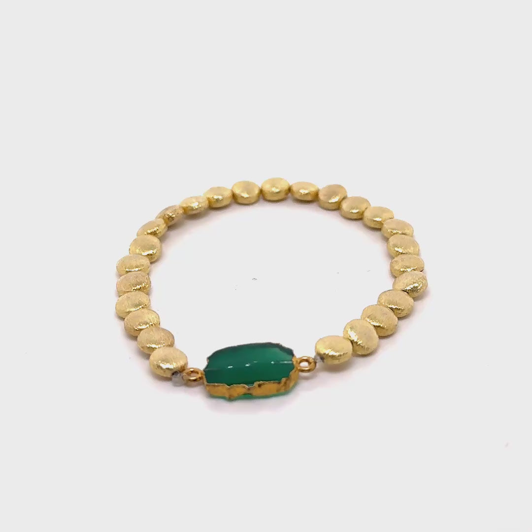 Gem Slab Gold Beads Stretchy Bracelet