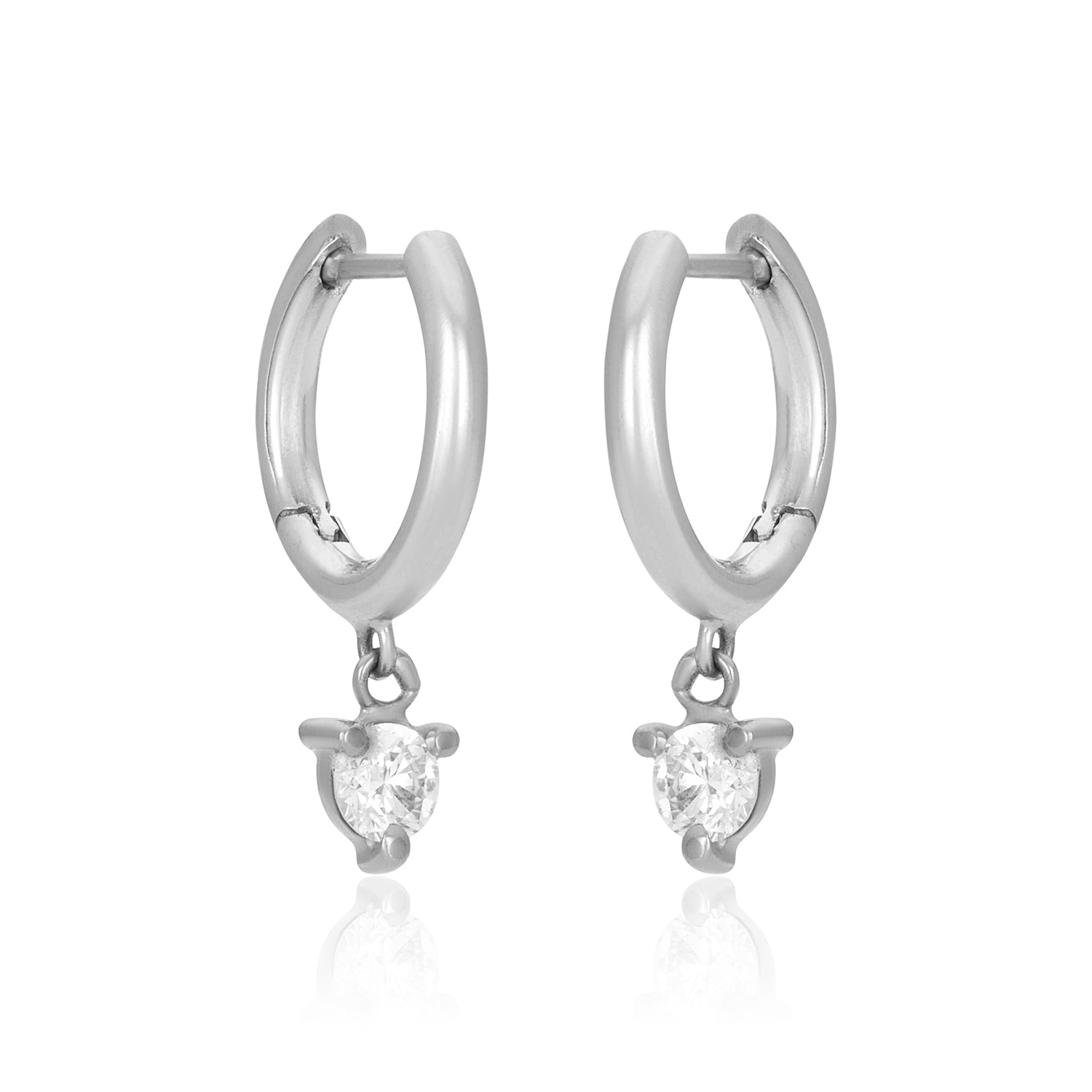 White gold diamond Dangle Small Hoops