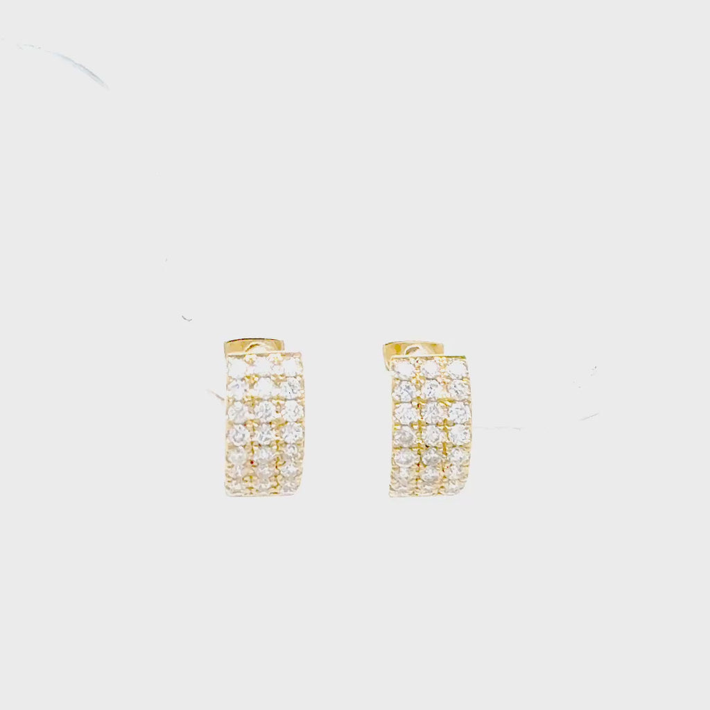 Experience the thrill of triple diamond rows with these 14k gold hoops, perfect for daily wear!