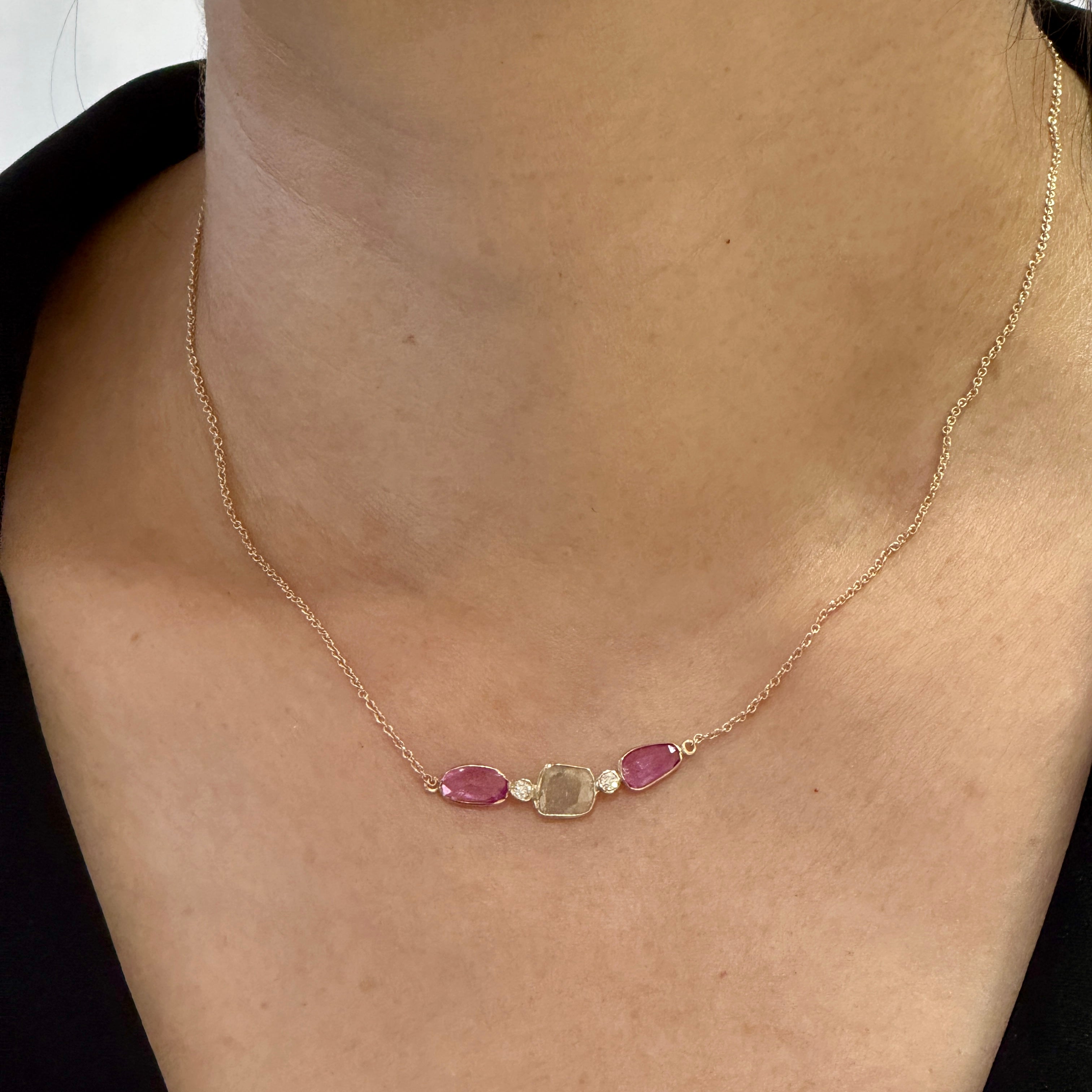 Trio Slice Pink Sapphire Diamond Row Necklace 14k