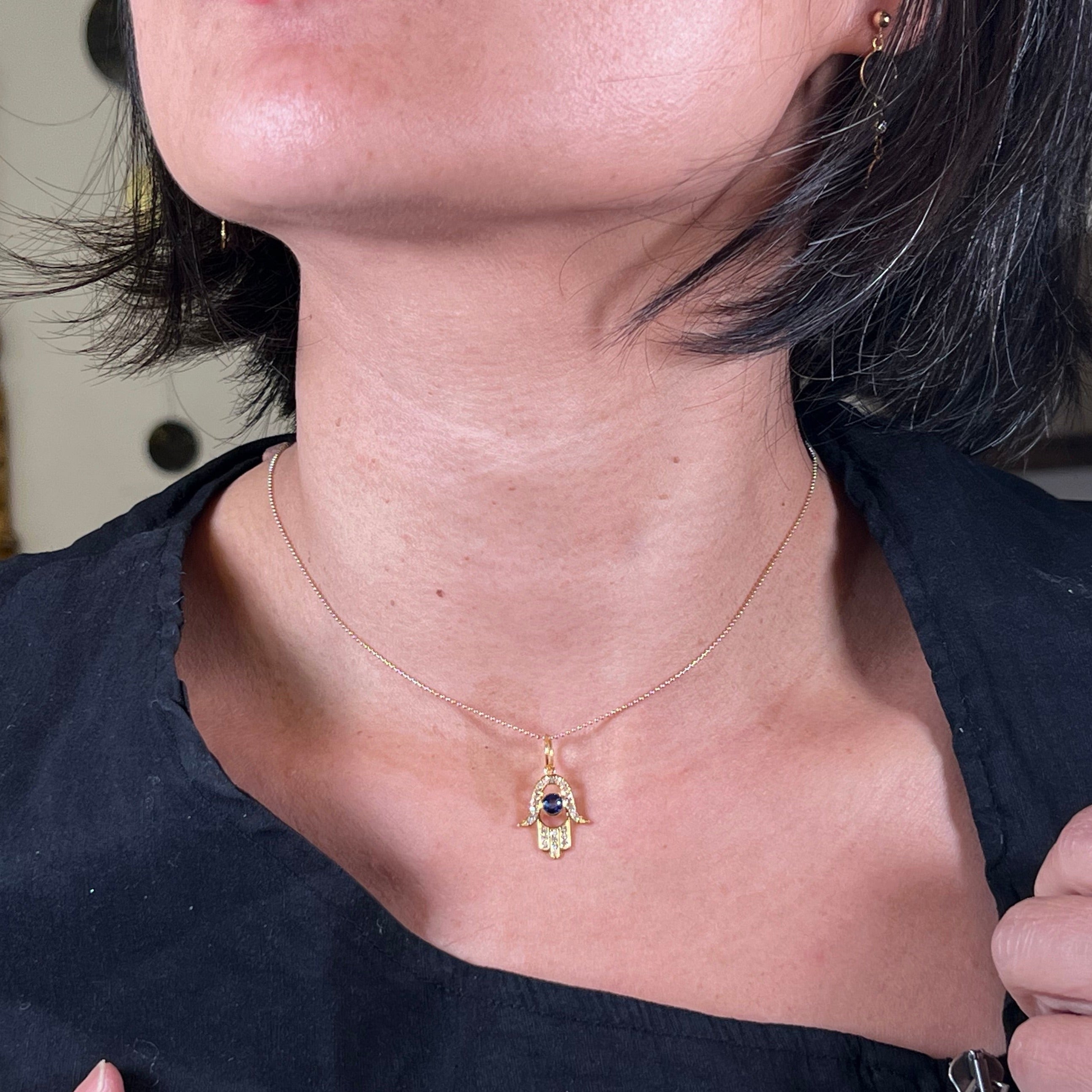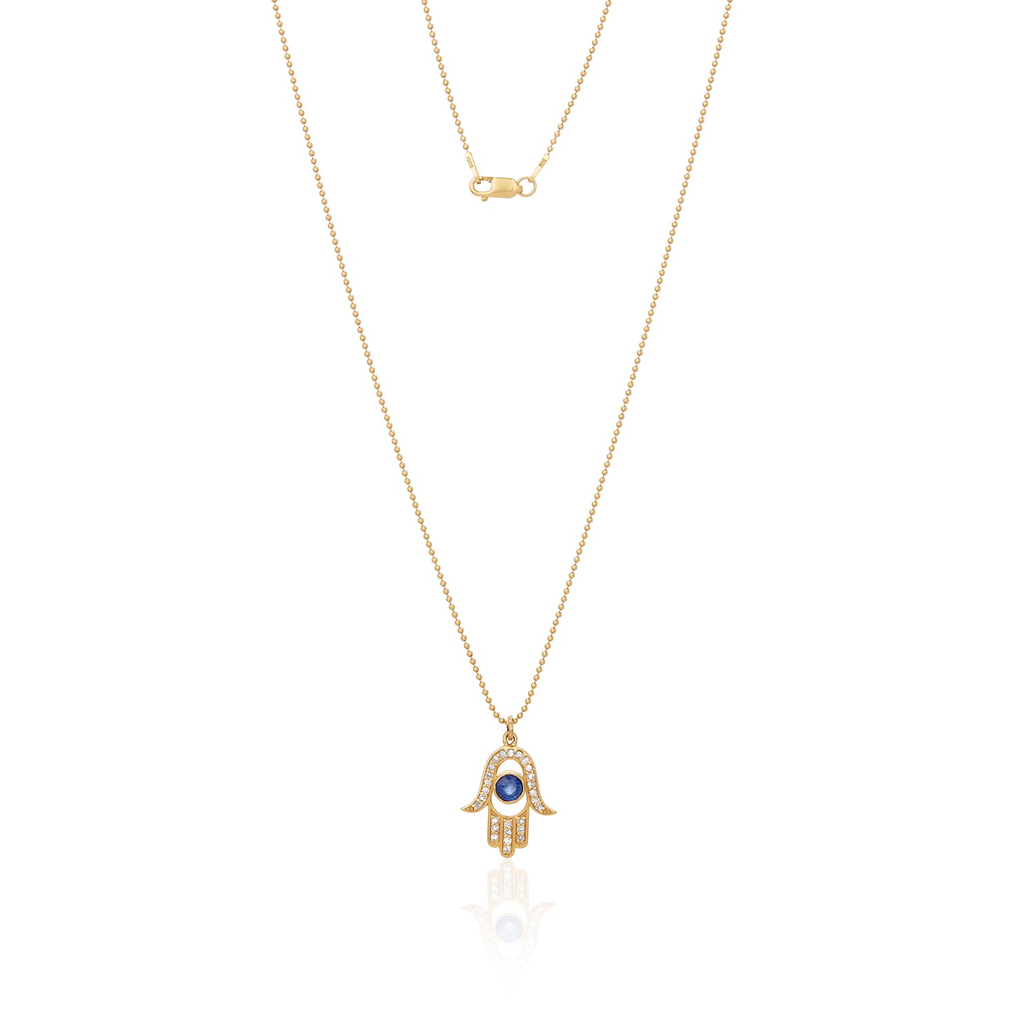 Sapphire Diamond Hamsa Hand Pendant Necklace 14K