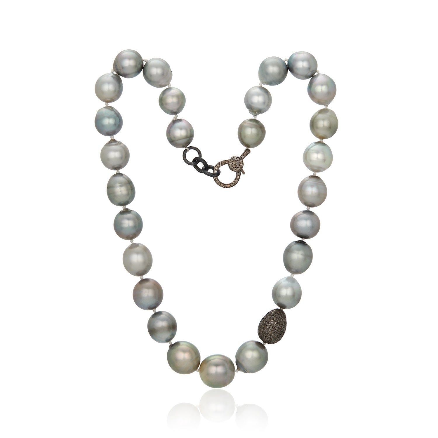 Ava South Sea Pearl Silver Diamond Lock Necklace