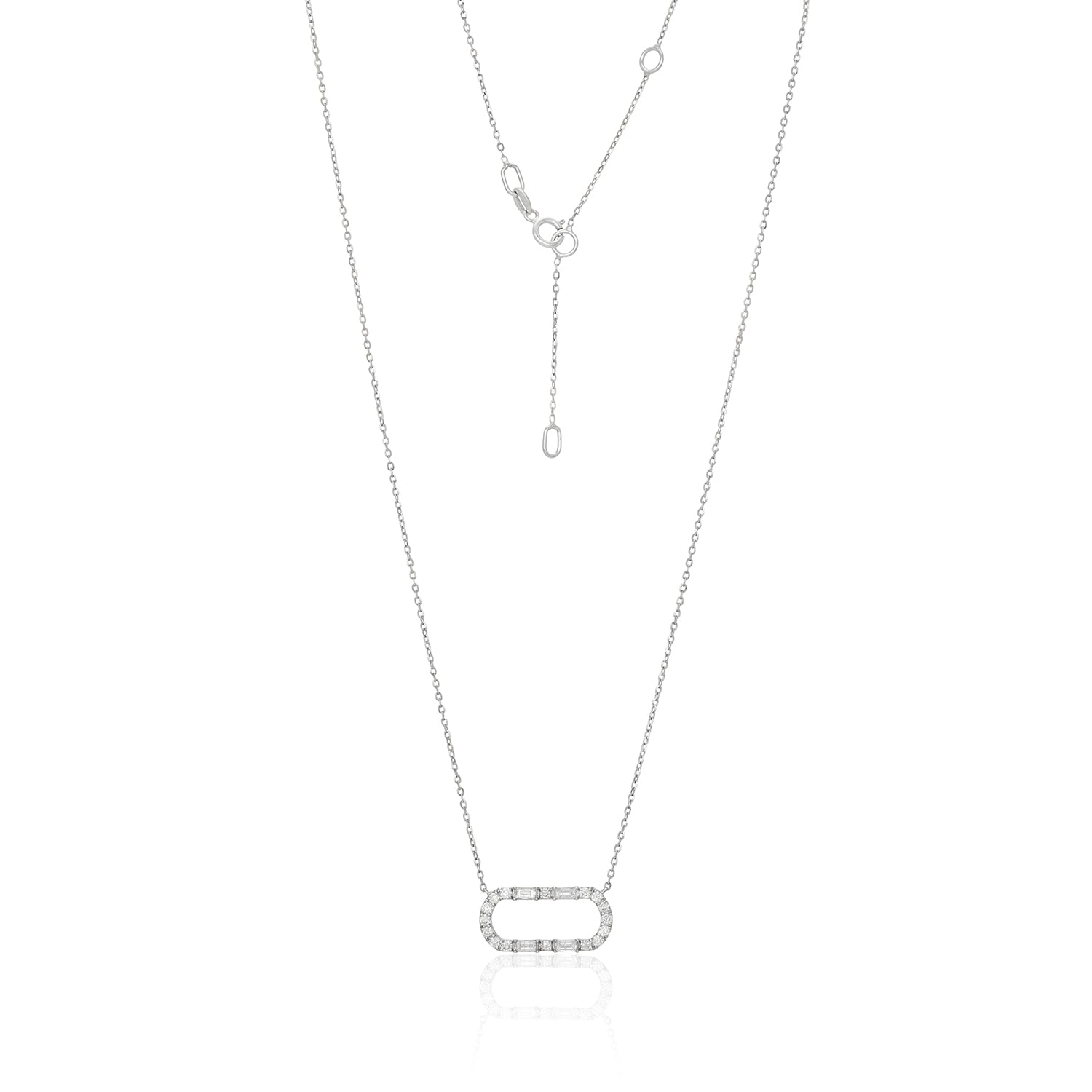 Oval Ring Diamond Pendant Necklace In 14k White Gold
