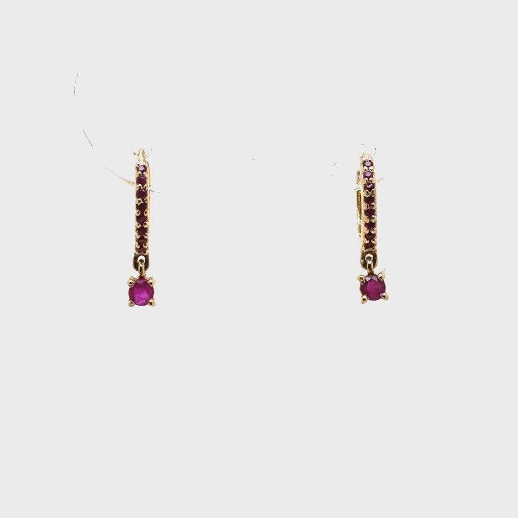 Dangle your way to ruby goodness with these playful Mini Ruby Dangle Earrings in 14k gold, hugging your ears in a dazzling display of quirky style.