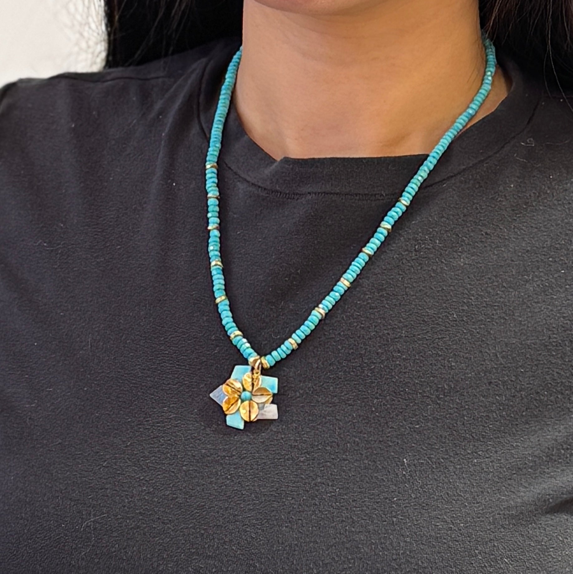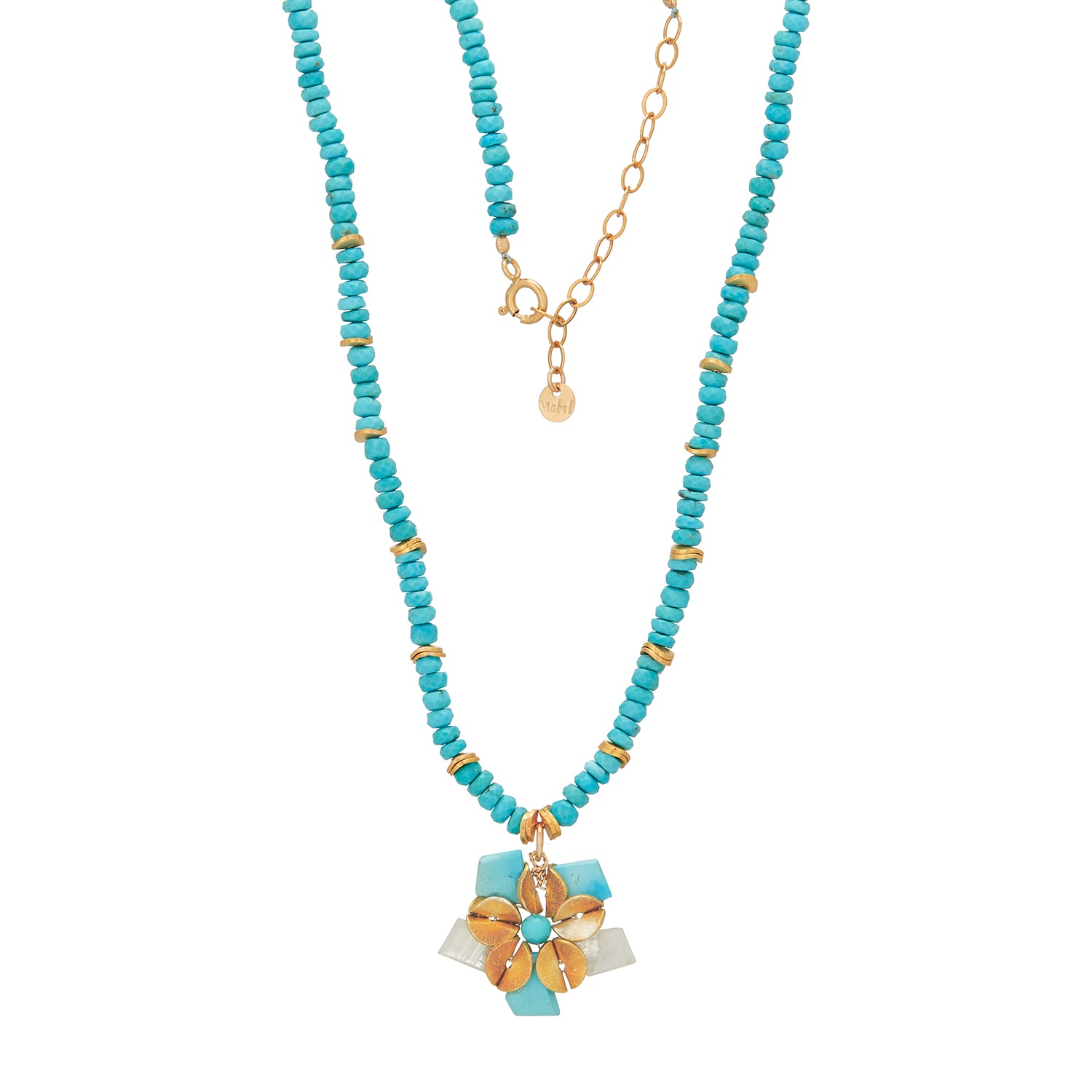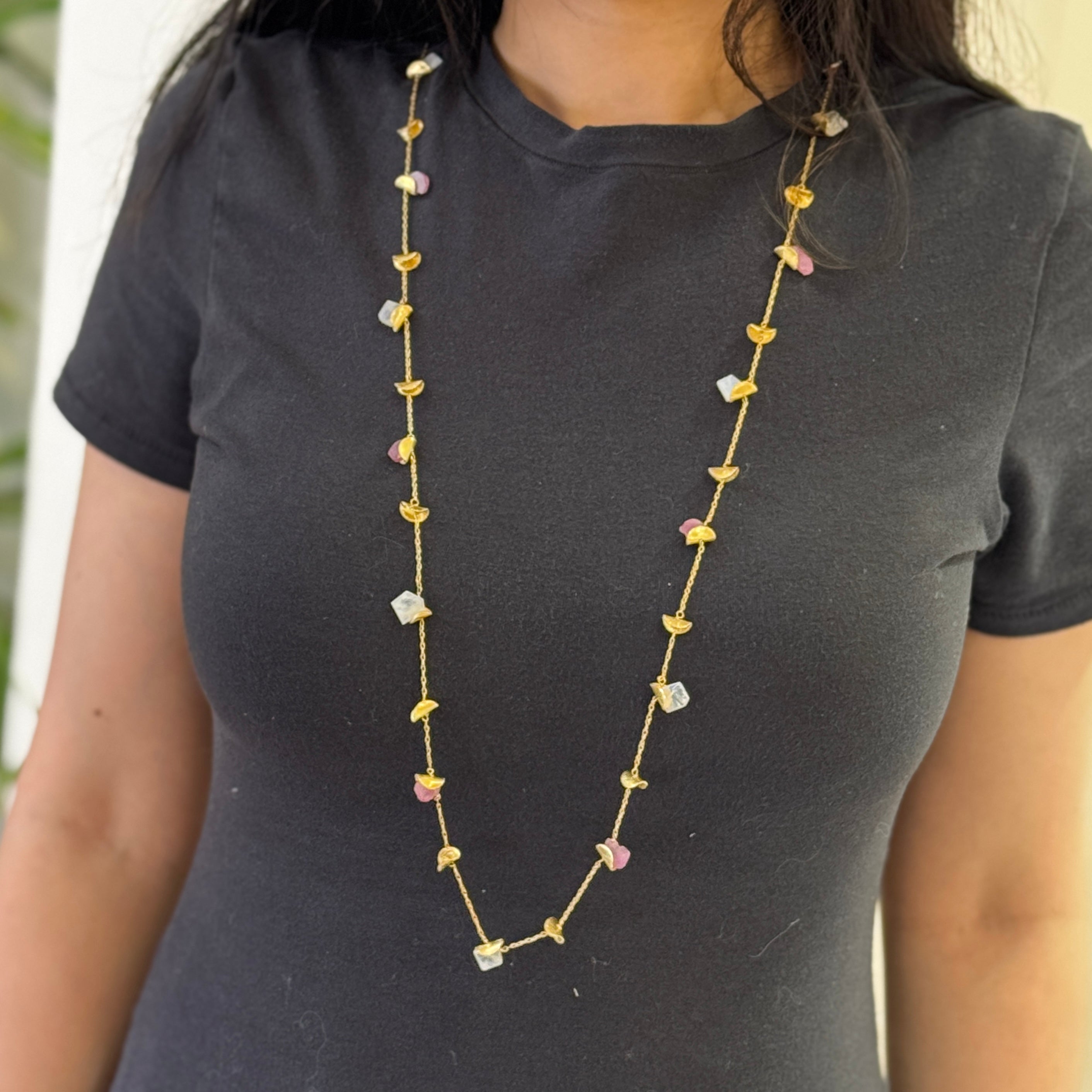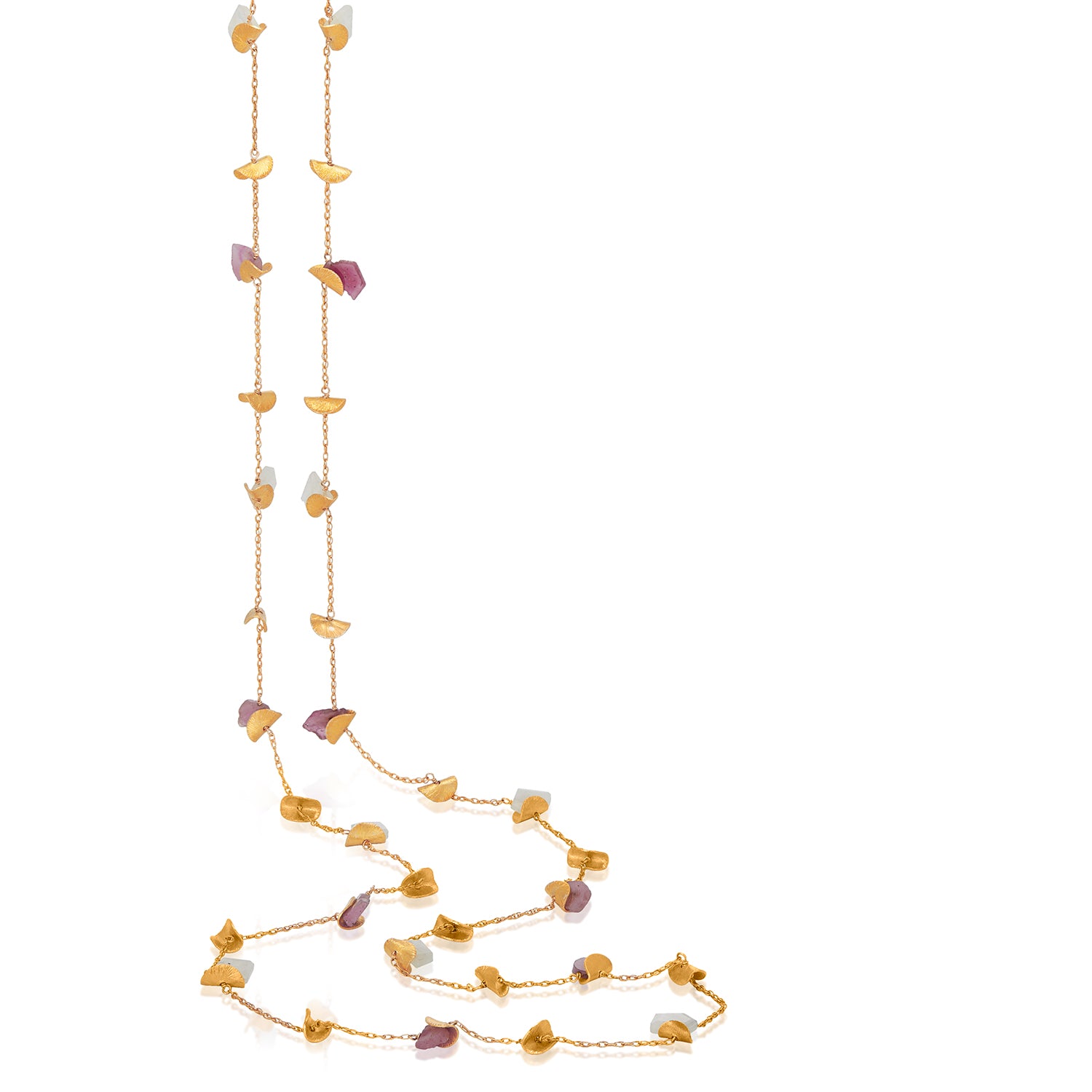 Pinkalicious Slice Sapphires Moonstone Floral Necklace