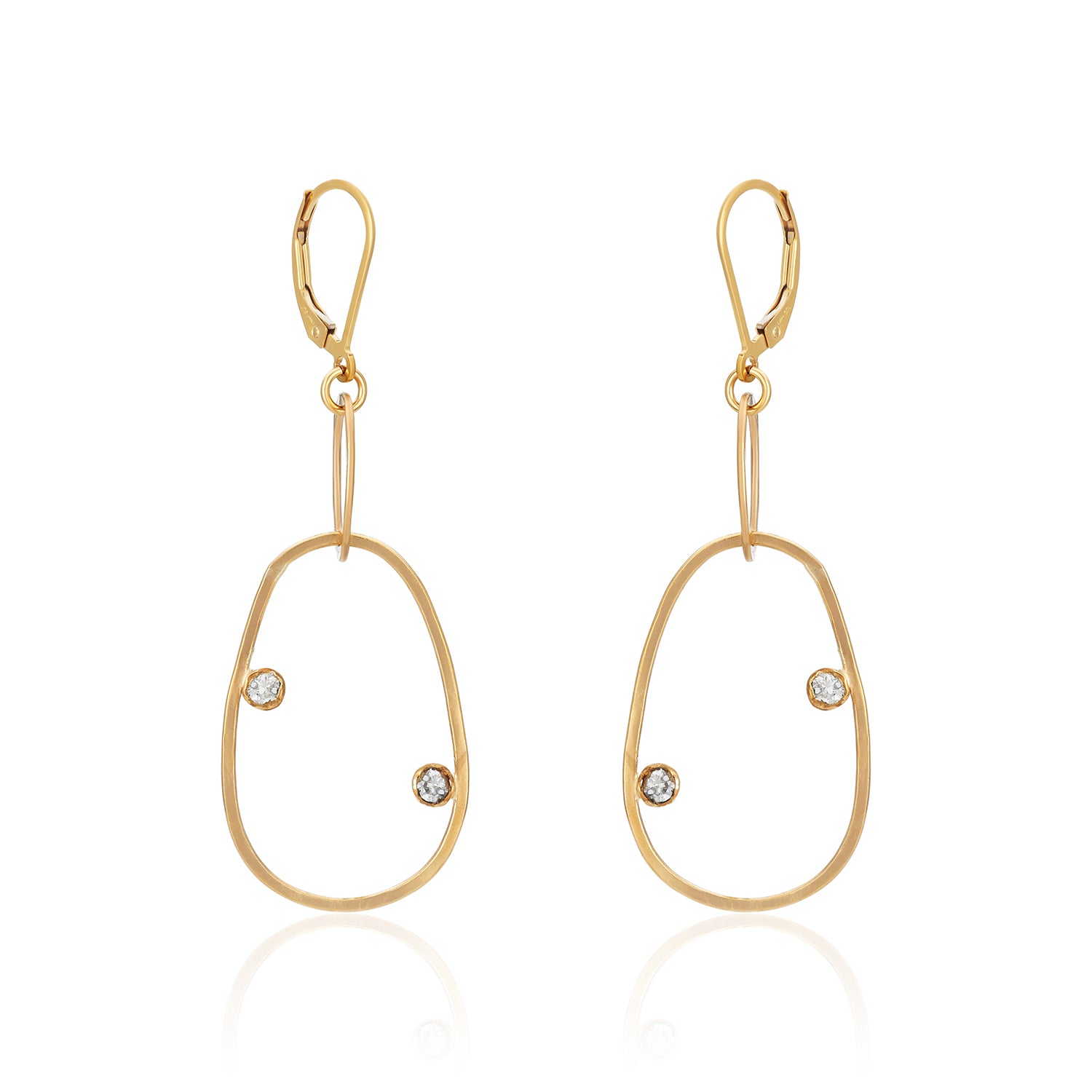 Rectangle Hoop With Tahitian Pearl Drop 14k