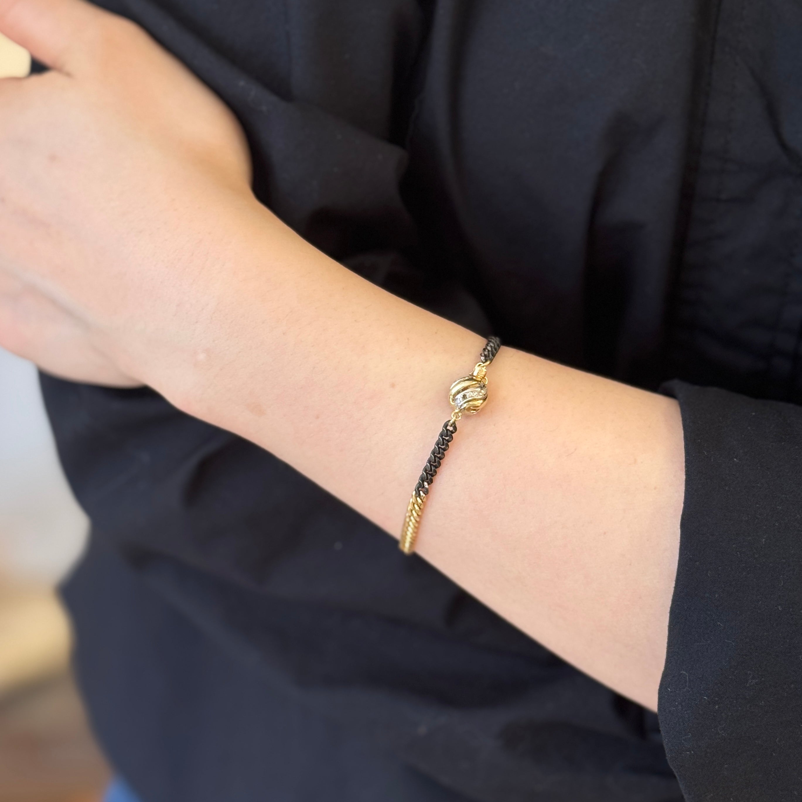 Diamond Spiral Ball Charm Mixed Metal Bracelet 14k
