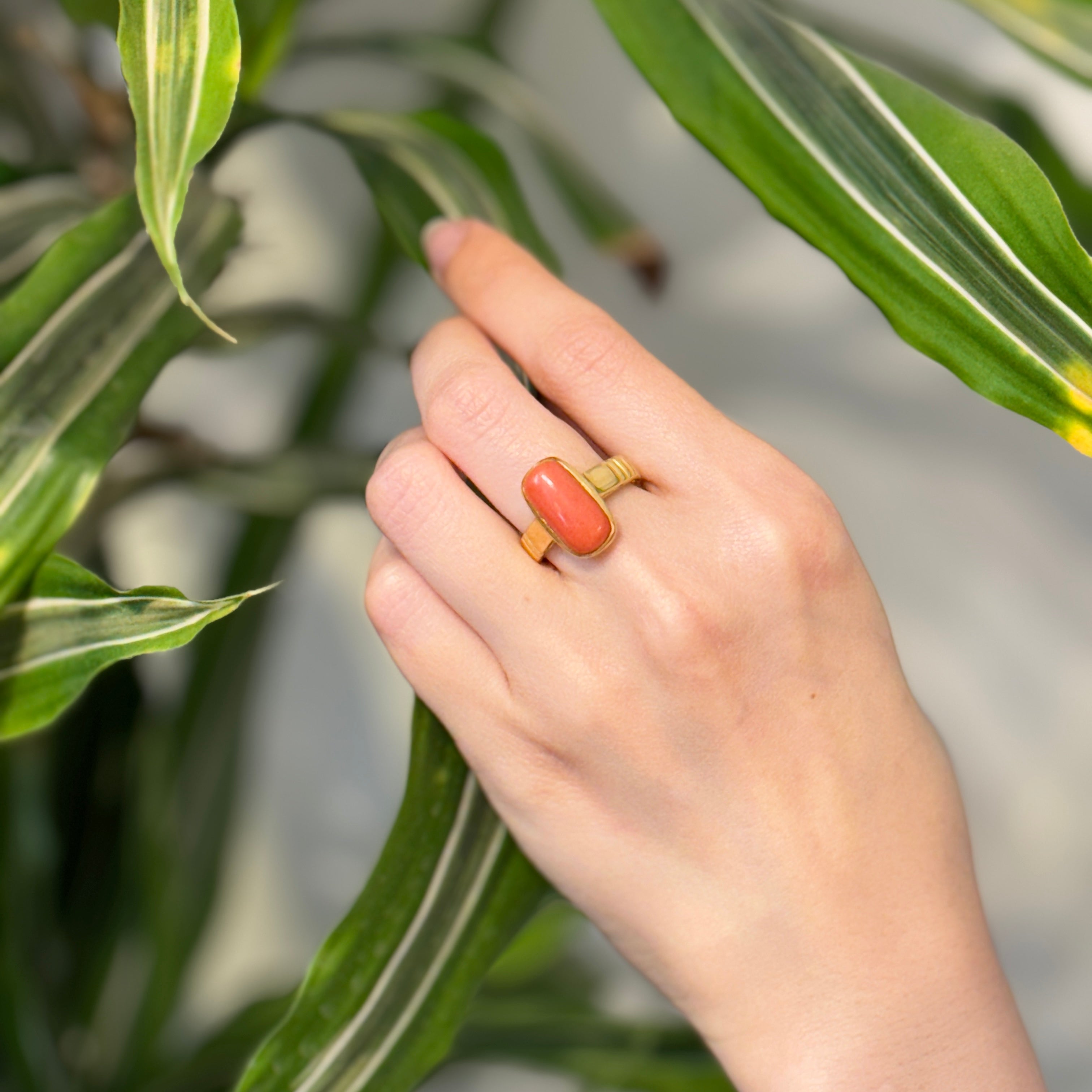 Rectangle Pave Diamond Center Stripe Ring 14k Gold