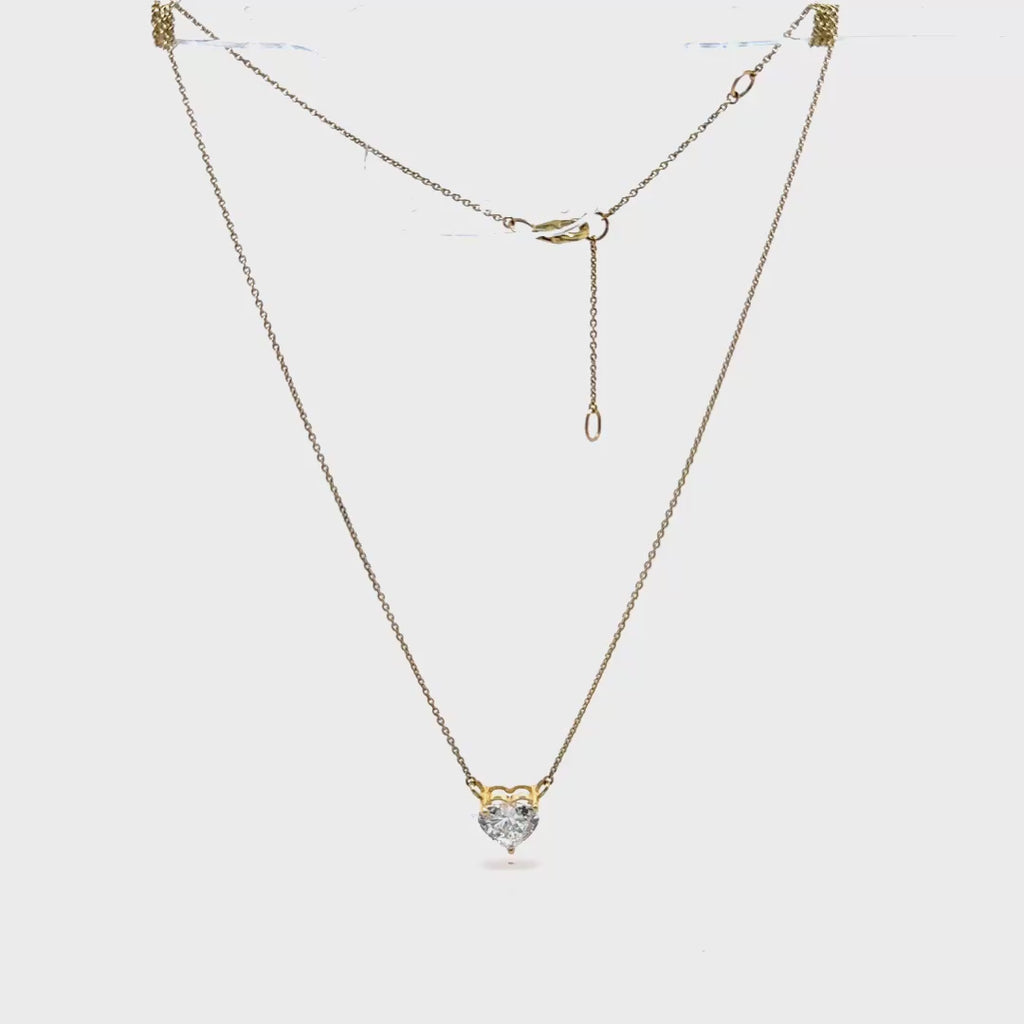 Own your elegance with this commanding heart-shaped lab diamond pendant set in premium 14k gold while the radiant gemstone captures attention with every move.
