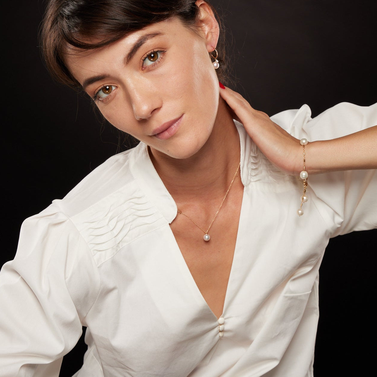 Half Moon Eclipse Long Necklace All Gold- Pearl
