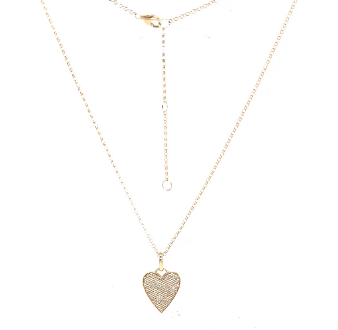 Heart Shaped Pave Diamond Pendant Gold Necklace In 14K