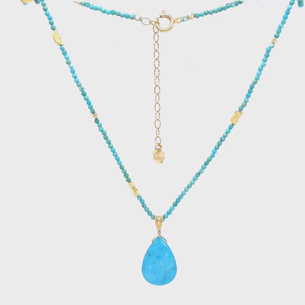 This necklace playfully combines ombre sapphire with a one of kind pink tourmaline pendant and gold-plated half moon charm, featuring an extender for adjustable wear. Also available in green tourmaline and smokey quartz pendant, and all in blue turquoise
