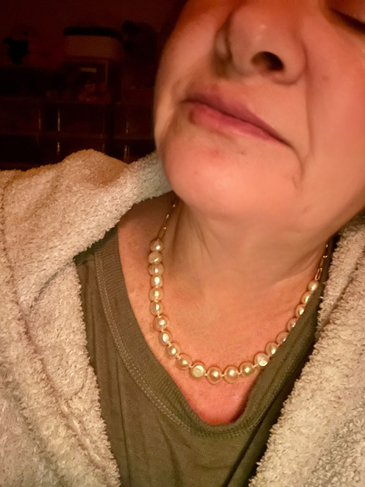 I am loving this beautiful and elegant necklace. It provides a casual chic look for any style outfit, and I’m looking forward to wearing it year round, with a variety of necklines. The knotted pearls are carefully hand crafted, and are balanced nicely with the paperclip chain. Highly recommend.