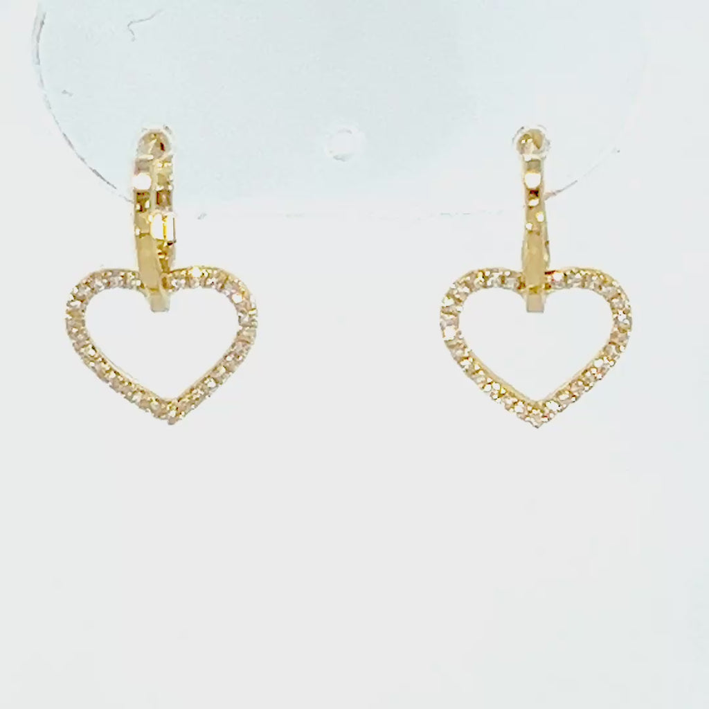These pave diamond heart drop earrings are sure to capture your heart and turn heads wherever you go.
